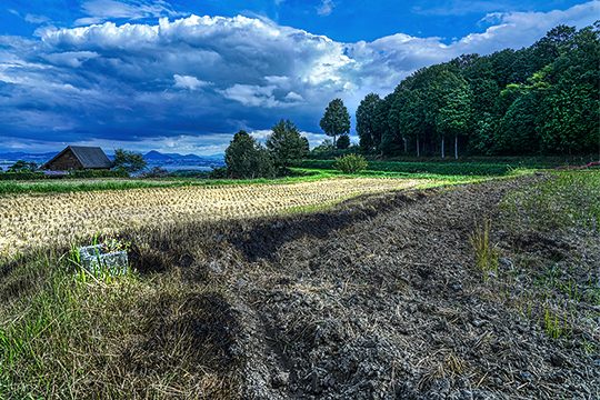 2024/09/29 田んぼの秋 今日の写真は、7月の「暑中御見舞」とほぼ同じ場所で同じように撮っている。季節の移り変わりと、田んぼの秋の深まりが写っている。 もうすぐ10月。それにしてもまだ暑い・・・